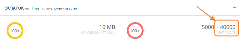 Вне зависимости от используемого тарифного плана вы можете купить необходимое количество запросов дополнительно. Для этого, используйте специальный слайдер показаный на картинке ниже.